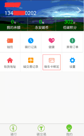 下面就開始綁定借車卡吧,打開支付寶城市公共自行車服務窗,微信城市公共自行車公眾號,永安行APP點擊[我的]都會看到這樣的界面。