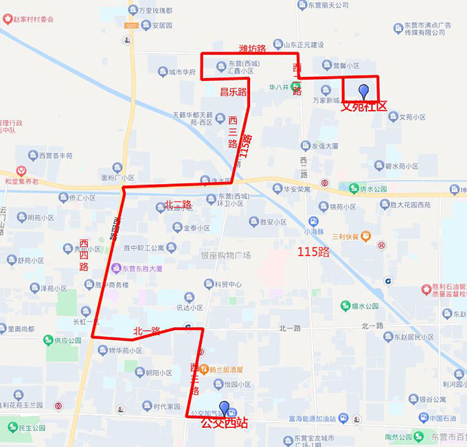線路走向:下行自公交西站西始發,經黃河路、西三路、北一路、西四路、北二路、西三路、昌樂路、嵩山路、濰坊路、西二路、昌樂路、無名路、煙臺路到達終點站文苑社區;上行自文苑社區始發,經煙臺路、文和路、昌樂路、西二路、濰坊路、嵩山路、昌樂路、西三路、北二路、西四路、北一路、西三路、黃河路到達終點站公交西站。