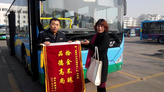 11月2日上午,美億家家居廣場的田女士拿著一面寫有“拾金不昧、品德高尚”的錦旗來到市公交公司汽車一隊,感謝101路駕駛員李振敏師傅拾金不昧的高尚品德。據公交公司工作人員了解得知,10月30日上午10時左右,田女士乘坐李振敏師傅駕駛的101路公交車來到東城辦事,辦理完事情后發現手提包不見了,包內有一部平板電腦、1萬多元現金和一些結賬單據。田女士十分著急,抱著試試看的想法來到市公交公司汽車一隊,詢問得知駕駛員李振敏師傅已將該包上交車隊,車隊工作人員也在想辦法聯系失主,核對情況后,將錢物如數歸還給了田女士。