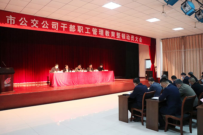 2021年11月5日上午9時,市公交公司干部職工管理教育整頓動員大會在南會議室召開,市交通運輸局黨組成員、市交通運輸事業服務中心主任王杰出席會議,公司黨委書記趙龍同志主持動員會。
