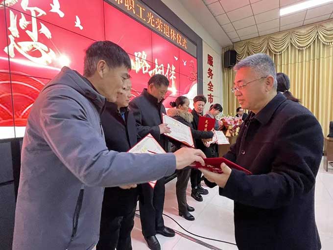 2月14日上午,市公交公司在辦公樓一樓會議室舉辦干部職工光榮退休儀式。30名退休老同志齊聚一堂,共敘公交情懷。公司黨委班子成員、老同志退休前所在單位主要負責同志參加儀式。