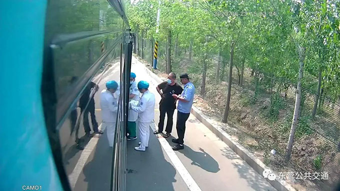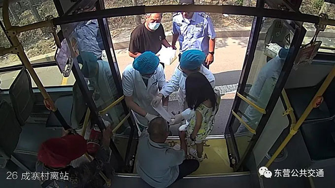 救人后的孫建強(qiáng)仔細(xì)檢查了三人的傷勢,“由于電動車側(cè)翻擠壓,大爺胳膊受傷,被扎了玻璃碴子,大娘腰部受傷,小女孩的眼睛受了傷,腿也受了傷,我就趕緊撥打了120。”同時,孫建強(qiáng)向所在車隊(duì)匯報了遇到的突發(fā)情況。車隊(duì)領(lǐng)導(dǎo)當(dāng)即表示,安頓好車內(nèi)乘客,先救傷者。在等待救護(hù)車到來的時間,孫建強(qiáng)從公交車上拿了些衛(wèi)生紙和礦泉水,簡單幫三人清理了傷口。23日的東營正是高溫天,氣象臺發(fā)布了高溫紅色預(yù)警,當(dāng)天的氣溫最高達(dá)到了41攝氏度,非常炎熱,“我們的公交車上都開著空調(diào),我就把他們扶到公交車上休息。”救護(hù)車很快就來了,醫(yī)護(hù)人員在給傷者進(jìn)行包扎的時候,孫建強(qiáng)一邊安撫老人,一邊向老人詢問要不要幫忙聯(lián)系家人,老人告訴了他村里書記的電話。經(jīng)聯(lián)系,村大隊(duì)書記表示立即安排相關(guān)人員跟進(jìn)。