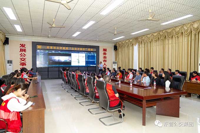 啟動儀式結束后,大家統一乘公交車來到市公交集團,參加東營市“公交開放日”活動,現場觀摩了市公交智能調度指揮中心、客服中心以及汽車一隊,詳細了解了智慧公交系統建設、公交業務辦理、車隊日常運營等情況,真正“零距離”“面對面”接觸公交、感受公交。