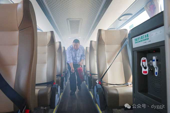 演練重點圍繞公交車、旅游客車發(fā)生火災(zāi)應(yīng)急處置、消防器材使用、滅火演練三方面進行。演練設(shè)置了滅火器、應(yīng)急錘、門、窗等應(yīng)急設(shè)施的使用操作、發(fā)生火災(zāi)時人員疏散、應(yīng)急逃生、報告等流程環(huán)節(jié),突出了演練的實戰(zhàn)性和實效性。