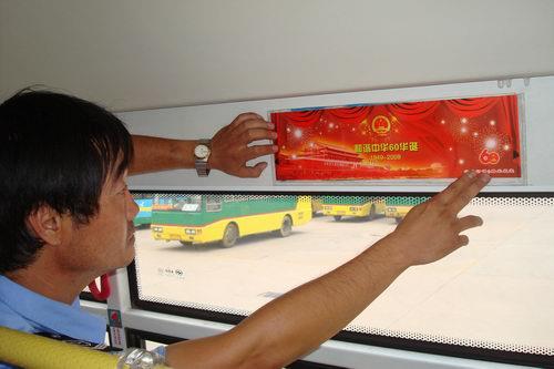 國(guó)慶節(jié)來臨之際,汽車七隊(duì)8路車組在車廂張貼“和諧中華60華誕”、“喜迎60周年國(guó)慶慶典”的慶國(guó)慶宣傳貼,為車廂增添了濃厚的節(jié)日氣氛 。