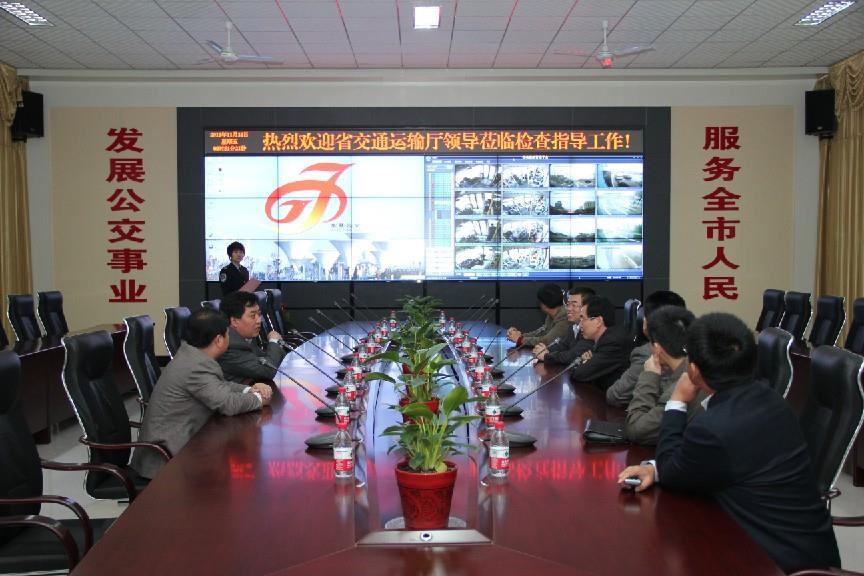 11月18日上午,省交通運輸廳“兩保兩樹”活動指導組王際遜處長一行,在市交通運輸局工會主席王愛軍、運管處處長李希俊、市公交公司經理朱新民等有關領導的陪同下,到東營公交智能調度指揮中心對3G視頻監控系統進行了檢查指導。