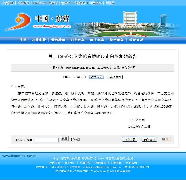 2012年5月14日東營市政府網站報道